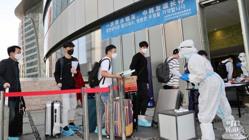 △中韓兩國啟動人員往來“快捷通道”。這是來自韓國的企業(yè)員工抵達(dá)天津。