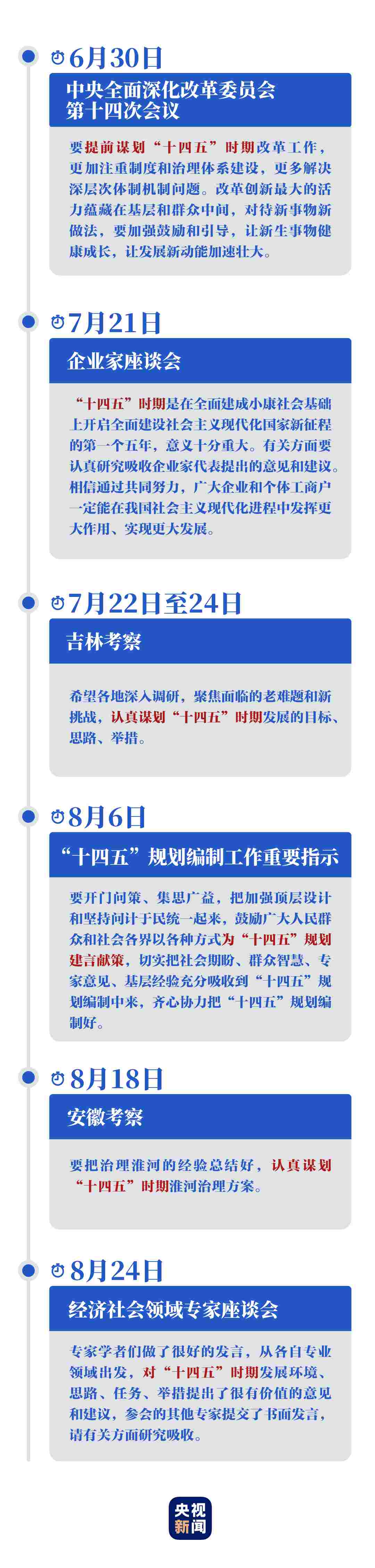 今年以來,習近平總書記多次主持召開重要會議、赴地方考察,就“十四五”開門問策,聽取大家對當前經(jīng)濟形勢、“十四五”規(guī)劃的意見和建議,強調(diào)要集思廣益、齊心協(xié)力把“十四五”規(guī)劃編制好。