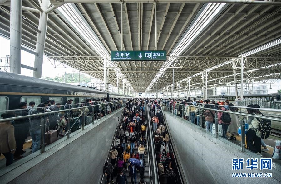 10月7日,長假臨近尾聲,貴陽火車站迎來旅客返程高峰。這是旅客在貴陽火車站準(zhǔn)備出站。新華社記者陶亮攝