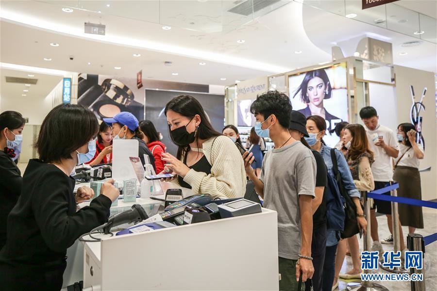 10月27日,消費(fèi)者在海南省??谑腥赵聫V場免稅店選購商品。新華社記者張麗蕓攝