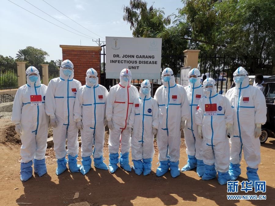 2020年8月21日,中國抗疫醫(yī)療專家組成員在南蘇丹首都朱巴的一處新冠肺炎治療機(jī)構(gòu)留影。新華社發(fā)(中國駐南蘇丹大使館供圖)