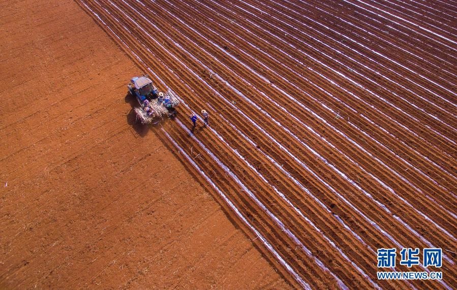 湛江市,甘蔗地里處處閃現著忙碌的身影,耕地、播種、施肥、覆膜、管護;