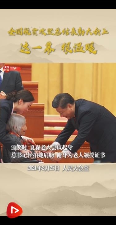 習(xí)近平在總結(jié)表彰大會上莊嚴(yán)宣告:“經(jīng)過全黨全國各族人民共同努力,在迎來中國共產(chǎn)黨成立一百周年的重要時刻,我國脫貧攻堅戰(zhàn)取得了全面勝利!”