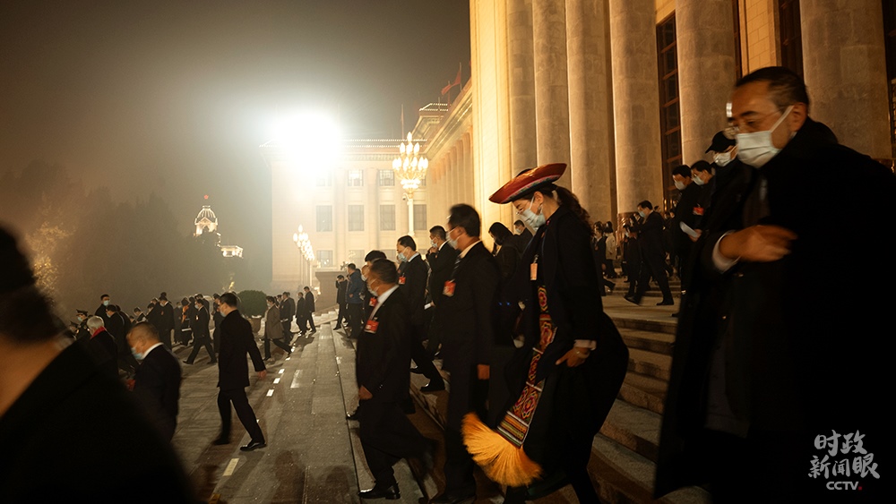 △開幕會結束后,委員們離開會場。(總臺央視記者程鋮拍攝)