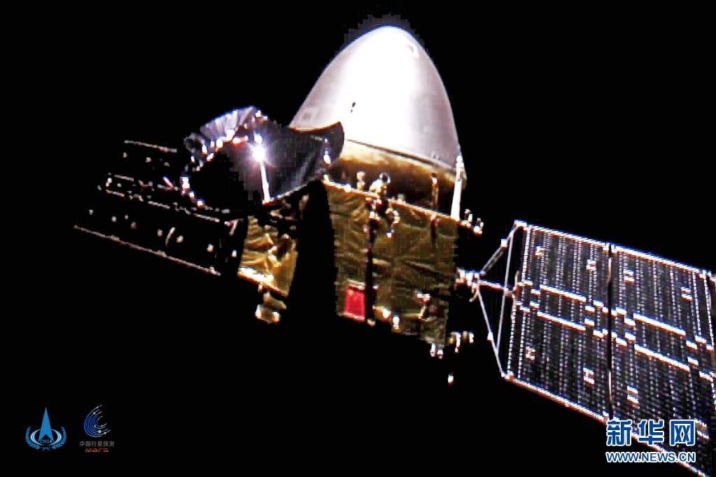 2020年10月1日,國家航天局發(fā)布我國首次火星探測(cè)任務(wù)天問一號(hào)探測(cè)器飛行圖像。新華社發(fā)(國家航天局供圖)