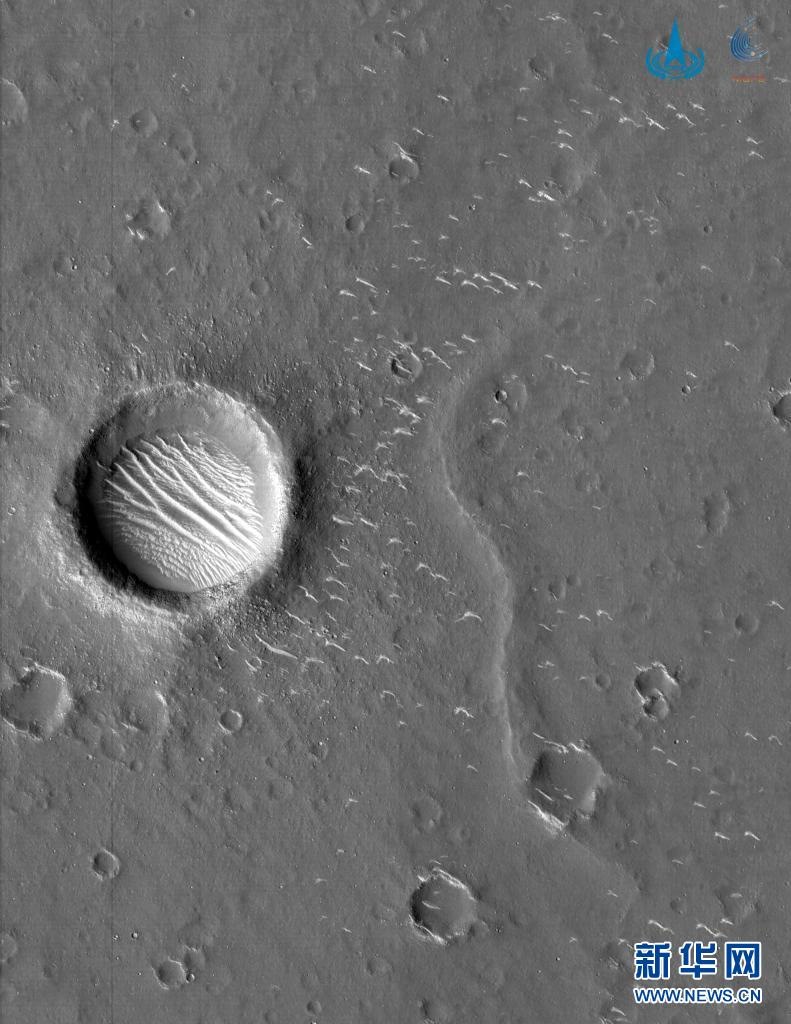 2021年3月4日,國家航天局發(fā)布3幅由我國首次火星探測(cè)任務(wù)天問一號(hào)探測(cè)器拍攝的高清火星影像圖,包括2幅全色圖像和1幅彩色圖像。這是國家航天局公布的高清火星影像圖。新華社發(fā)(國家航天局供圖)