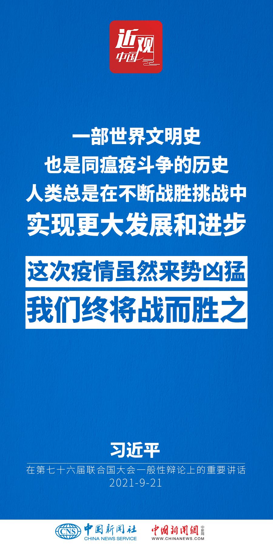 中國國家主席習近平21日在北京以視頻方式出席第七十六屆聯合國大會一般性辯論并發(fā)表題為《堅定信心 共克時艱 共建更加美好的世界》的重要講話。習近平指出——