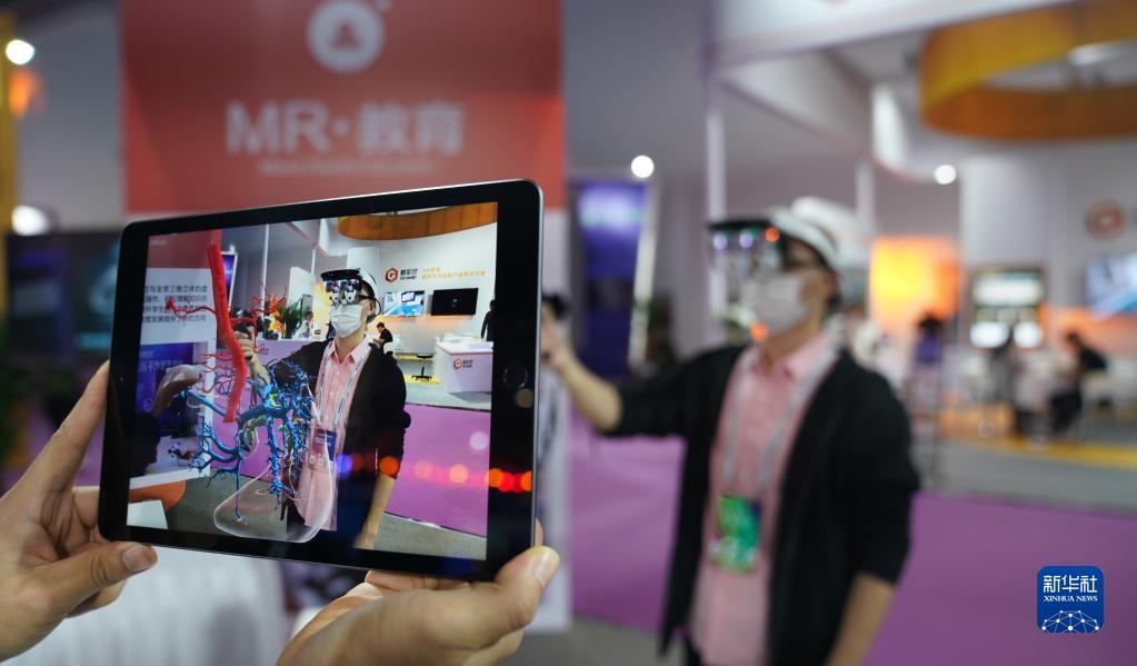 2020年10月19日,2020世界VR產(chǎn)業(yè)大會(huì)云峰會(huì)在江西省南昌市開幕,這是觀眾在大會(huì)VR/AR產(chǎn)品和應(yīng)用展覽會(huì)上體驗(yàn)“MR交互系統(tǒng)”在醫(yī)務(wù)教學(xué)上的應(yīng)用。新華社記者胡晨歡攝