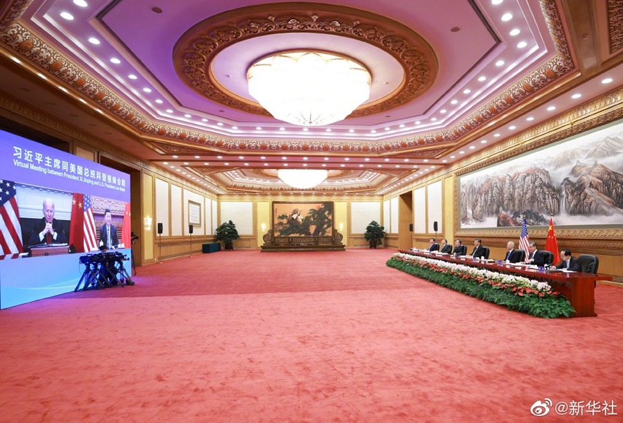 新華社北京11月16日電 國家主席習(xí)近平11月16日上午同美國總統(tǒng)拜登舉行視頻會晤。雙方就事關(guān)中美關(guān)系發(fā)展的戰(zhàn)略性、全局性、根本性問題以及共同關(guān)心的重要問題進行了充分、深入的溝通和交流。
