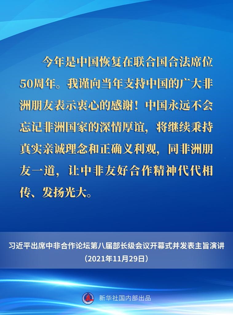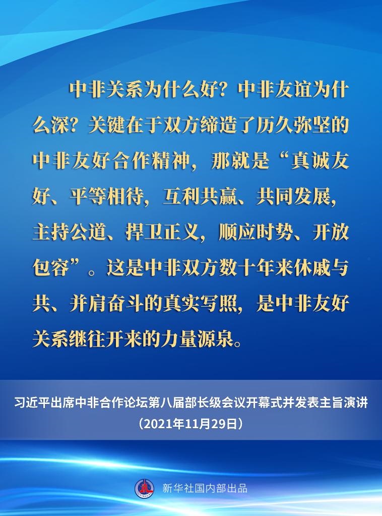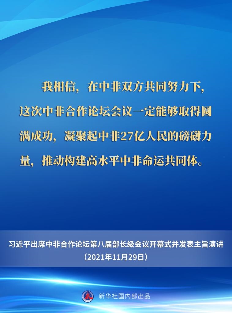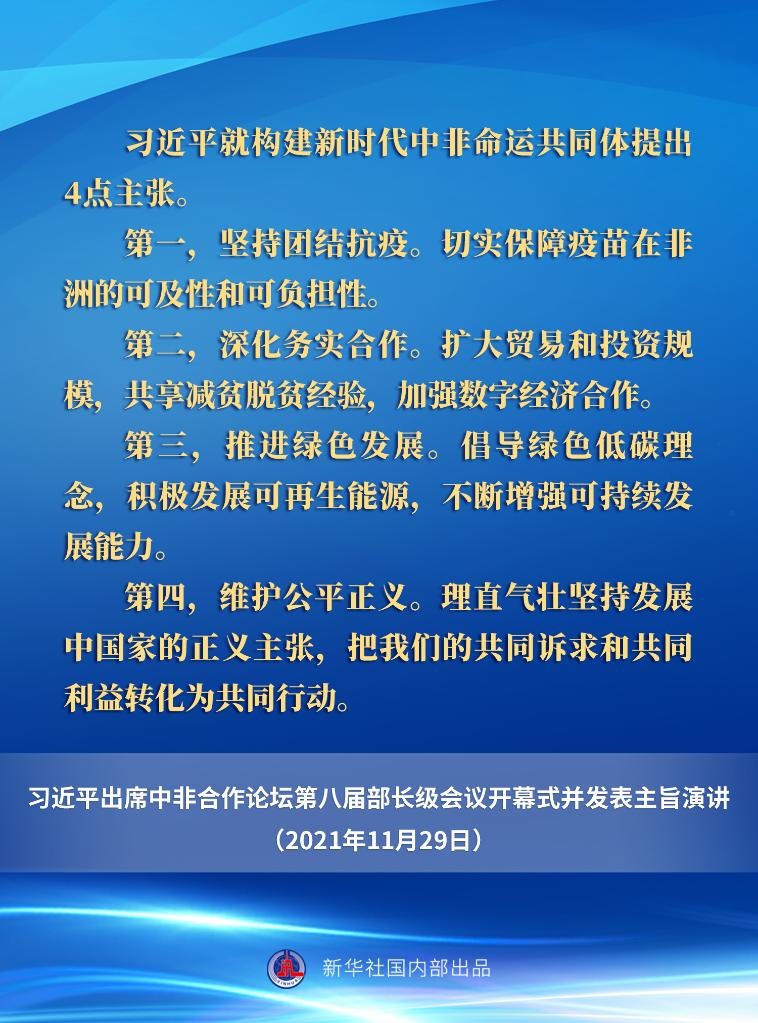 11月29日晚,國家主席習(xí)近平在北京以視頻方式出席中非合作論壇第八屆部長(zhǎng)級(jí)會(huì)議開幕式并發(fā)表主旨演講。一起來看要點(diǎn)。