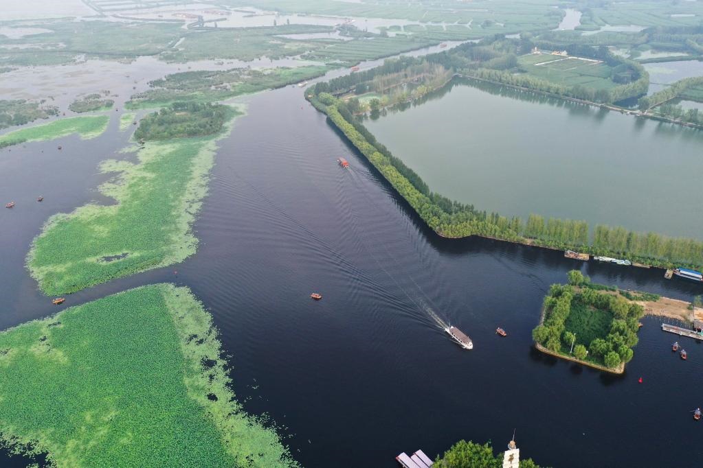 這是河北雄安新區(qū)白洋淀淀區(qū)景色(2021年7月15日,無人機拍攝)。新華社記者朱旭東攝