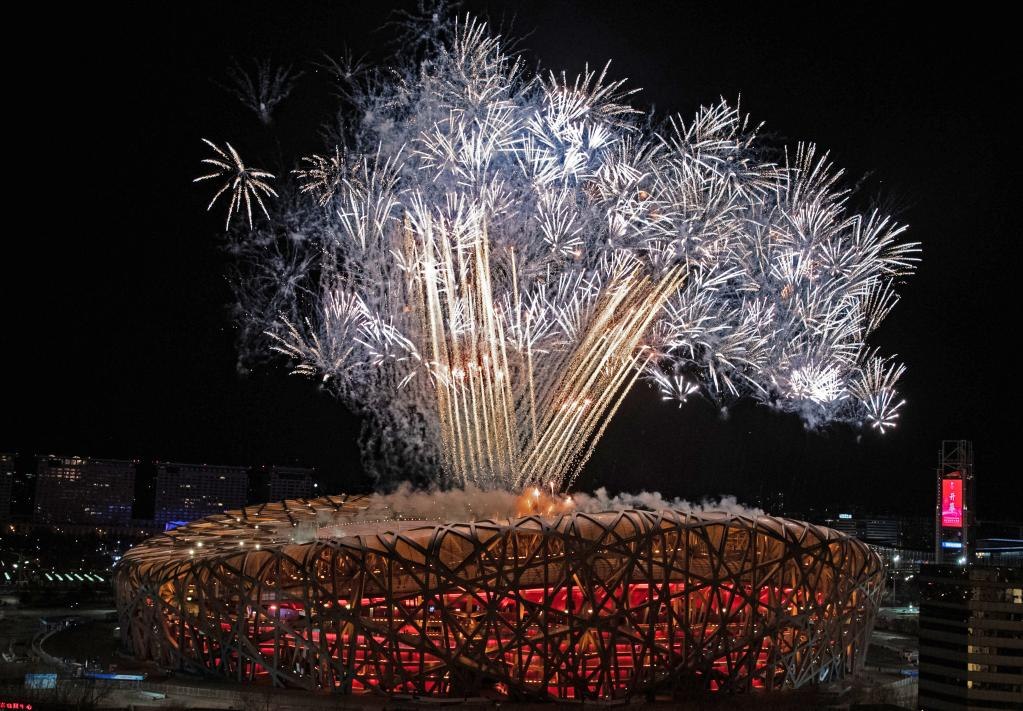 2月4日晚,第二十四屆冬季奧林匹克運(yùn)動(dòng)會(huì)開幕式在北京國家體育場(chǎng)舉行。圖為焰火表演。新華社記者鄔惠我攝