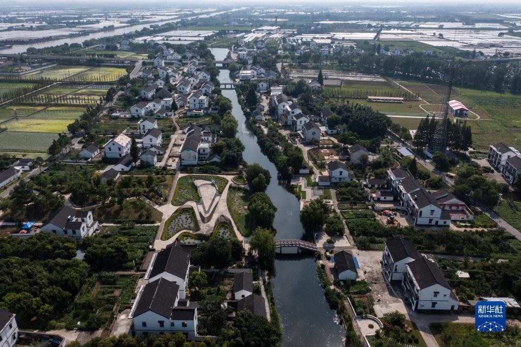 空中俯瞰浙江省嘉興市嘉善縣姚莊鎮(zhèn)橫港村(2021年7月12日攝,無人機照片)。近年來,嘉善縣建設高標準農(nóng)田14.8萬畝;同時建設產(chǎn)業(yè)幫扶聯(lián)合體、農(nóng)業(yè)社會化服務綜合體等,不斷拓寬農(nóng)民增收致富渠道,走出了一條城鄉(xiāng)深度融合推動共同富裕的實踐路子。新華社記者徐昱攝