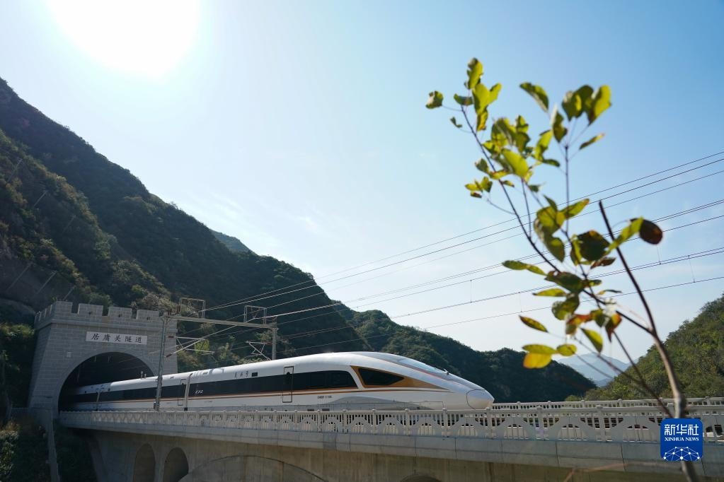 圖為2020年10月6日,一列復(fù)興號(hào)高鐵列車穿過(guò)京張高鐵居庸關(guān)隧道。新華社記者鞠煥宗攝