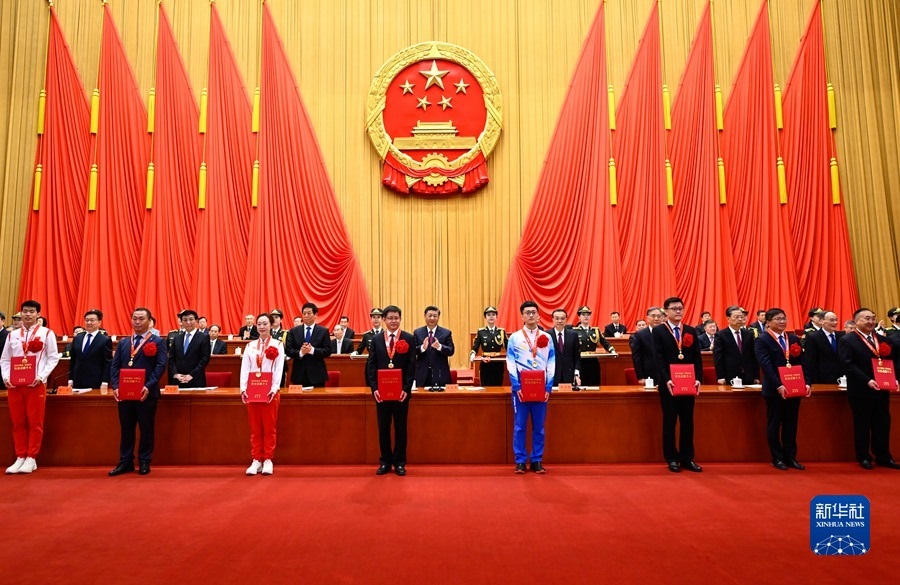 4月8日,北京冬奧會、冬殘奧會總結(jié)表彰大會在北京人民大會堂隆重舉行。習(xí)近平等為北京冬奧會、冬殘奧會突出貢獻個人和突出貢獻集體代表頒獎。新華社記者 李學(xué)仁 攝