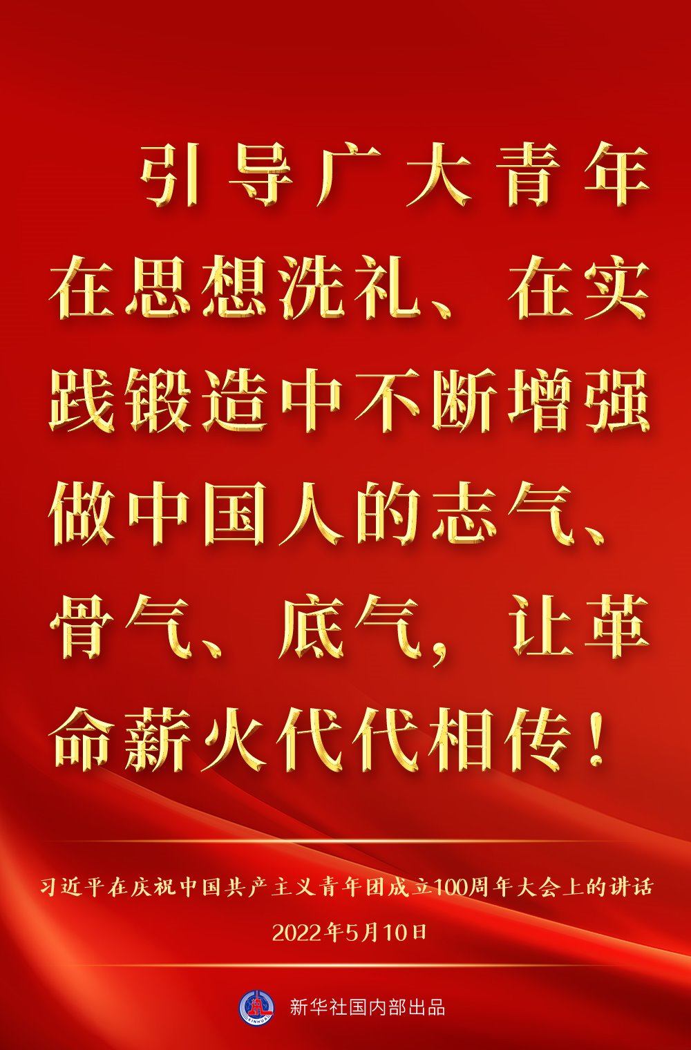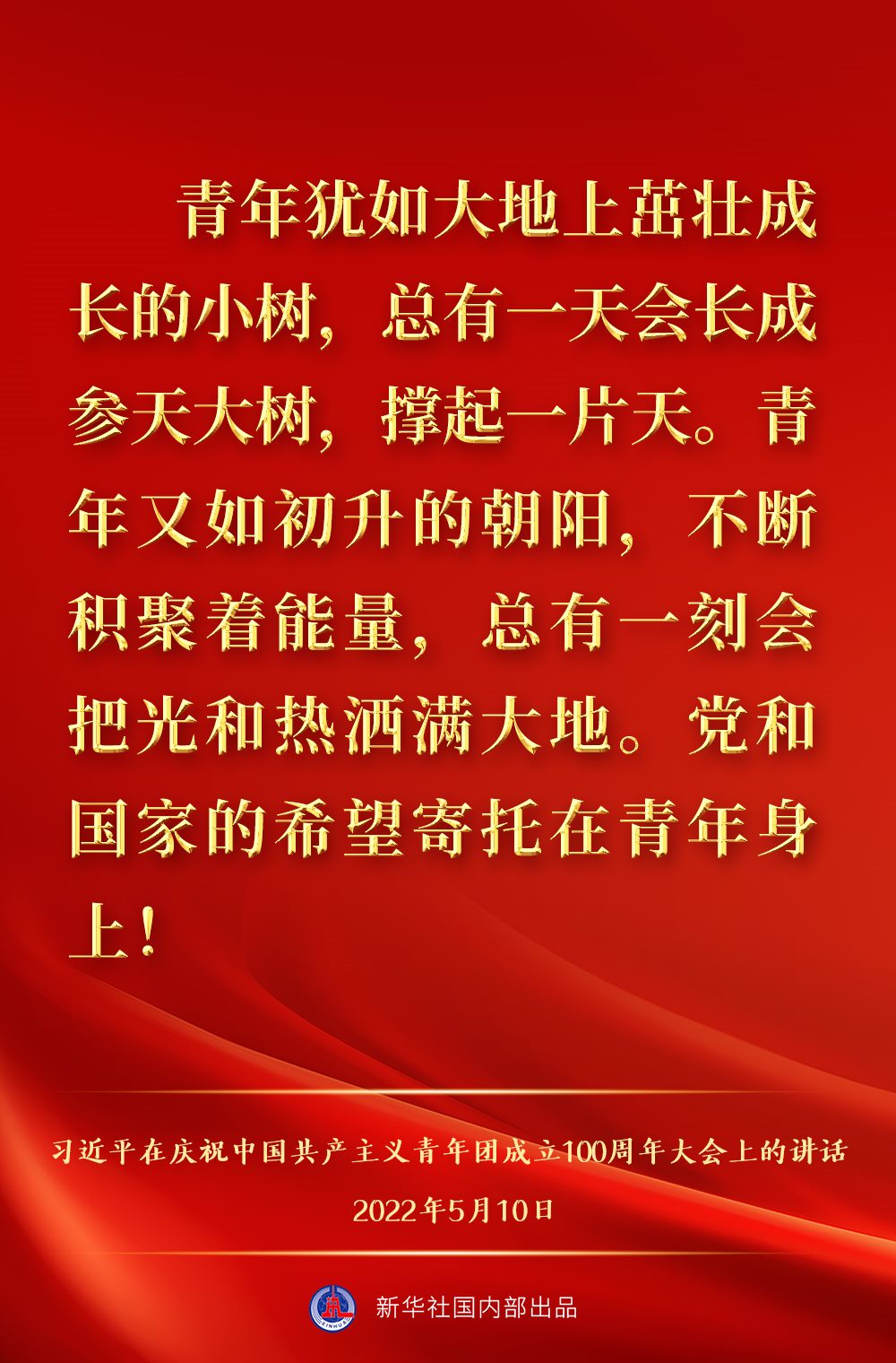 5月10日上午,中共中央總書記、國家主席、中央軍委主席習(xí)近平出席慶祝中國共產(chǎn)主義青年團(tuán)成立100周年大會并發(fā)表重要講話,一起來看金句。