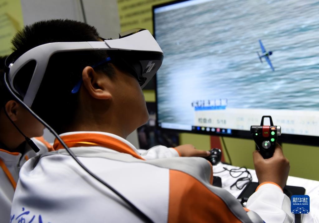 北京市八一學(xué)校的學(xué)生在北京市中小學(xué)生特色科技活動展示上體驗VR技術(shù)(2018年11月24日攝)。新華社記者 羅曉光 攝