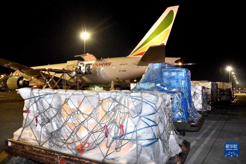 2020年4月14日,中國援助的抗疫物資抵達南非約翰內(nèi)斯堡奧坦博國際機場。新華社發(fā)(中國駐南非大使館供圖)