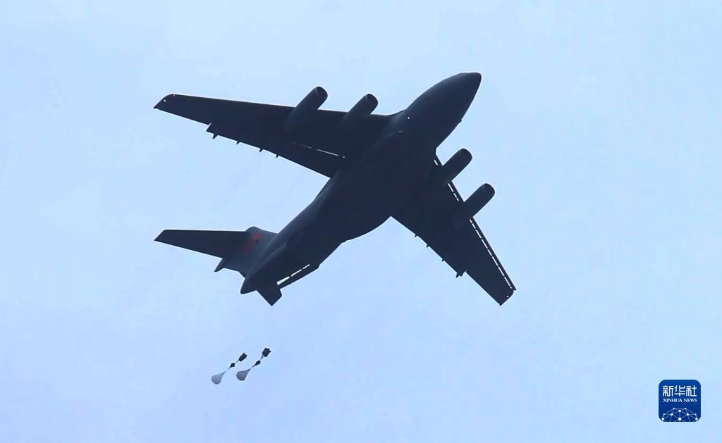 中國(guó)空軍大型運(yùn)輸機(jī)運(yùn)-20與空降兵部隊(duì)聯(lián)合開展空降空投訓(xùn)練(資料照片)。新華社發(fā)