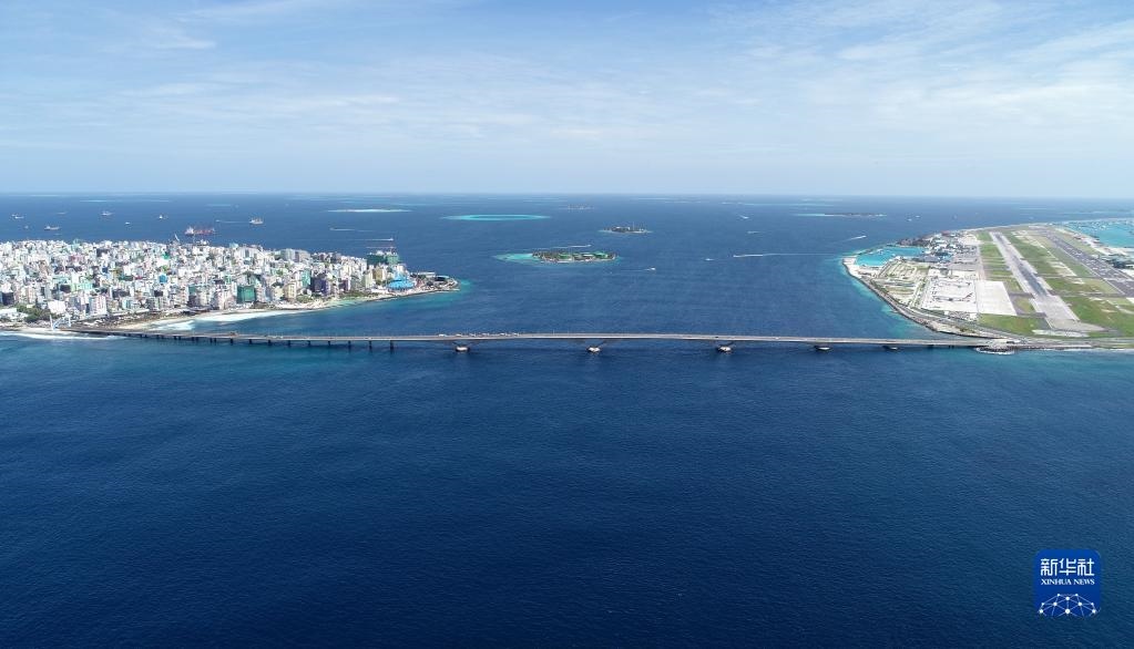 這是在馬爾代夫航拍的連接首都馬累和機(jī)場島的中馬友誼大橋(2019年8月30日攝)。新華社發(fā)(王明亮攝)