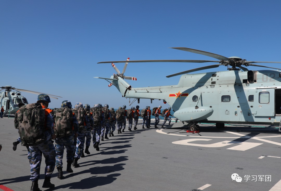 檢驗成果那天,多批多架次艦載直升機從海南艦甲板上騰空而起,標志著海南艦初步形成垂直投送能力。