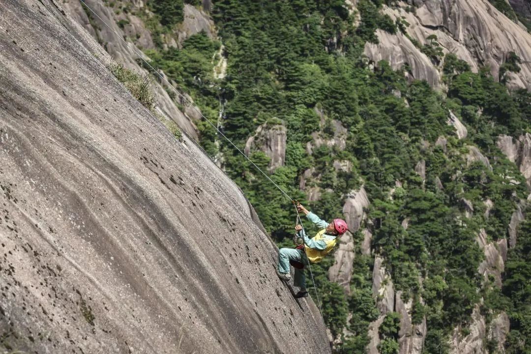 經(jīng)過專業(yè)訓(xùn)練和實地操作之后,李培生對這份工作已是駕輕就熟,憑借一根繩索,在峭壁上行走自如。在旅游旺季,他每天要放繩七八次,上下一趟需要一個小時左右,這對體力和耐力都有著極大的考驗。
