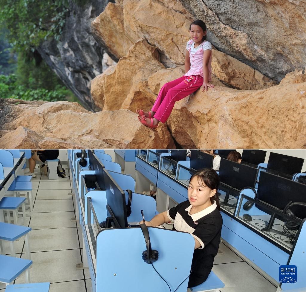 這是一張拼版照片,上圖為:在廣西大化瑤族自治縣板升鄉(xiāng)弄雷村哈保屯,11歲的蒙秋艷在懸崖邊休息,這一處約300米長(zhǎng)的半山懸崖,是她讀小學(xué)期間每天都要走的路(2012年9月5日新華社記者黃孝邦攝);下圖為:已經(jīng)實(shí)現(xiàn)大學(xué)夢(mèng)想的蒙秋艷,就讀于廣西醫(yī)科大學(xué),這是她在學(xué)校的語音室學(xué)習(xí)(新華社發(fā),2022年9月5日韋婷婷攝)。新華社發(fā)