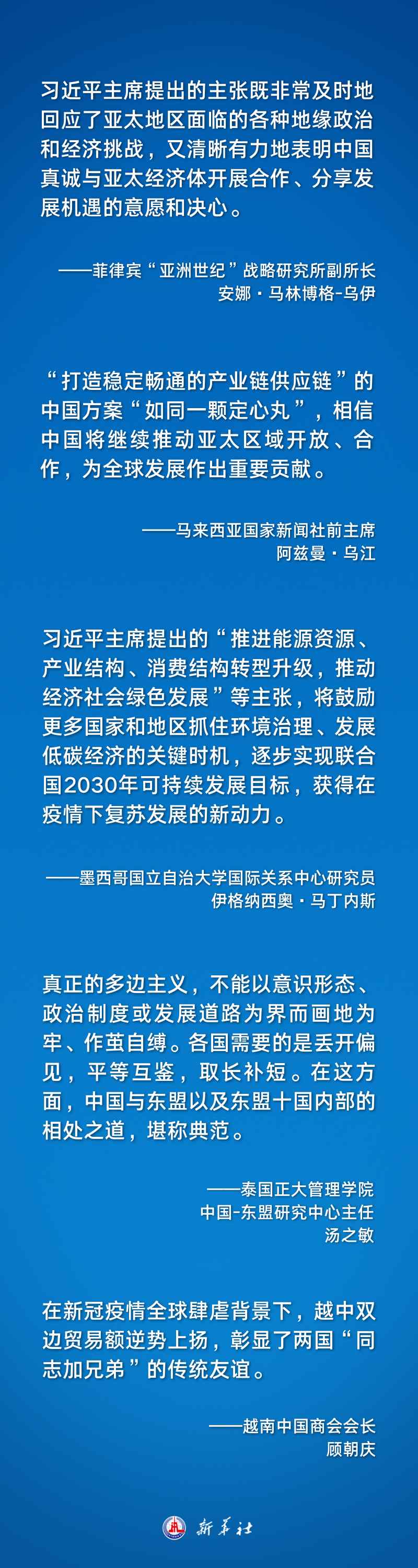 在他看來,一些西方政治勢力和媒體蓄意渲染炒作所謂“脫鉤論”,中國的主張是對這一鼓噪的有力回?fù)簟Ec此同時(shí),“打造穩(wěn)定暢通的產(chǎn)業(yè)鏈供應(yīng)鏈”的中國方案則“如同一顆定心丸”,相信中國將繼續(xù)推動亞太區(qū)域開放、合作,為全球發(fā)展作出重要貢獻(xiàn)。