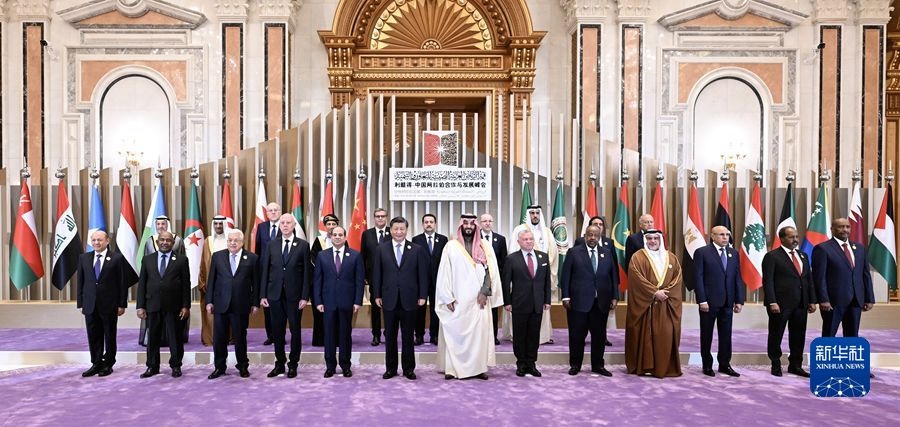 當(dāng)?shù)貢r(shí)間12月9日下午,首屆中國-阿拉伯國家峰會在沙特首都利雅得阿卜杜勒阿齊茲國王國際會議中心舉行。國家主席習(xí)近平和沙特王儲兼首相穆罕默德、埃及總統(tǒng)塞西、約旦國王阿卜杜拉二世、巴林國王哈馬德、科威特王儲米沙勒、突尼斯總統(tǒng)賽義德、吉布提總統(tǒng)蓋萊、巴勒斯坦總統(tǒng)阿巴斯、卡塔爾埃米爾塔米姆、科摩羅總統(tǒng)阿扎利、毛里塔尼亞總統(tǒng)加茲瓦尼、伊拉克總理蘇達(dá)尼、摩洛哥首相阿赫努什、阿爾及利亞總理阿卜杜拉赫曼、黎巴嫩總理米卡提等21個(gè)阿盟國家領(lǐng)導(dǎo)人以及阿拉伯國家聯(lián)盟秘書長蓋特等國際組織負(fù)責(zé)人出席峰會。習(xí)近平在會上發(fā)表題為《弘揚(yáng)中阿友好精神 攜手構(gòu)建面向新時(shí)代的中阿命運(yùn)共同體》的主旨講話。新華社記者 謝環(huán)馳 攝