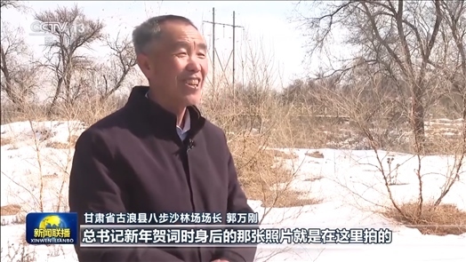 甘肅省古浪縣八步沙林場場長 郭萬剛:總書記新年賀詞時身后的那張照片就是在這里拍的,他叮囑我們要把身體保護(hù)好才能把沙治好,把日子過好,治沙就是為了更好的生活。