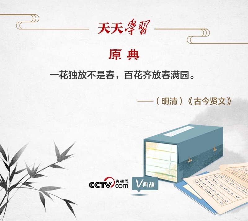 “一花獨(dú)放不是春,百花齊放春滿園”,意思是,一枝單獨(dú)開放的花朵不能代表春天的到來,只有百花競艷才是人間春色。這句民諺之所以廣為流傳,是因為飽含深刻哲理:一、闡述了整體和部分的辯證關(guān)系,“一花”是部分,“百花”是整體,部分的功能是較小的,要以整體發(fā)展帶動部分發(fā)展;二、體現(xiàn)了聯(lián)系的觀點,聯(lián)系具有普遍性,“一花”和“百花”是相互聯(lián)系的,因此要尊重文化的多樣性;三、說明了事物是客觀的和發(fā)展變化的,“百花齊放”是必然的,因此要順應(yīng)歷史潮流。