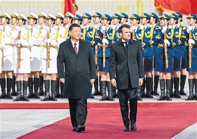 習(xí)近平歡迎馬克龍?jiān)俅卧L華。習(xí)近平指出,當(dāng)今世界正在經(jīng)歷深刻的歷史之變,中法作為聯(lián)合國安理會(huì)常任理事國和具有獨(dú)立自主傳統(tǒng)的大國,作為世界多極化、國際關(guān)系民主化的堅(jiān)定推動(dòng)者,有能力、有責(zé)任超越分歧和束縛,堅(jiān)持穩(wěn)定、互惠、開拓、向上的中法全面戰(zhàn)略伙伴關(guān)系大方向,踐行真正的多邊主義,維護(hù)世界和平、穩(wěn)定、繁榮。
