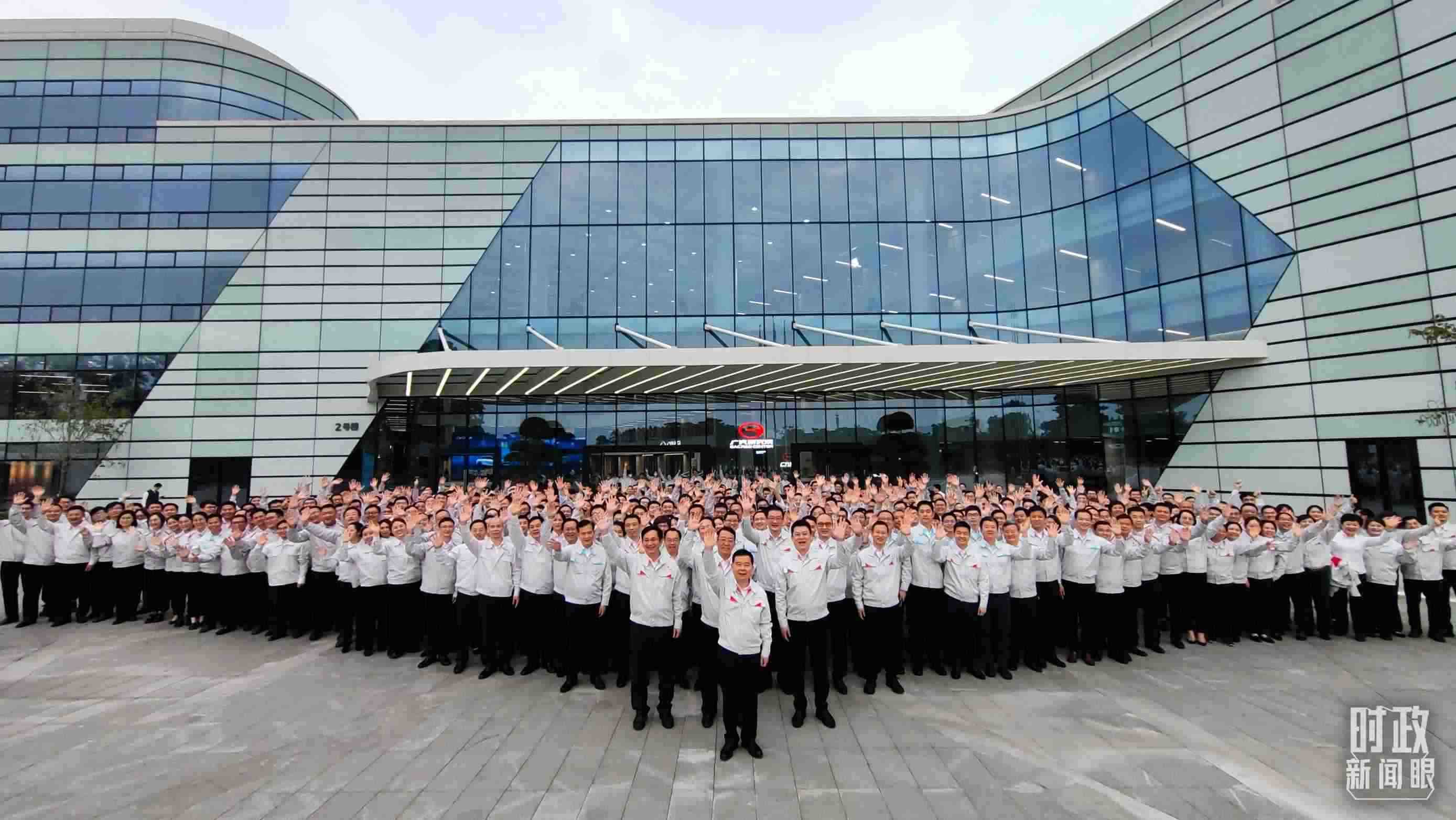 △考察當(dāng)天,廣汽員工代表大合影。(總臺(tái)央視記者張曉鵬拍攝)
