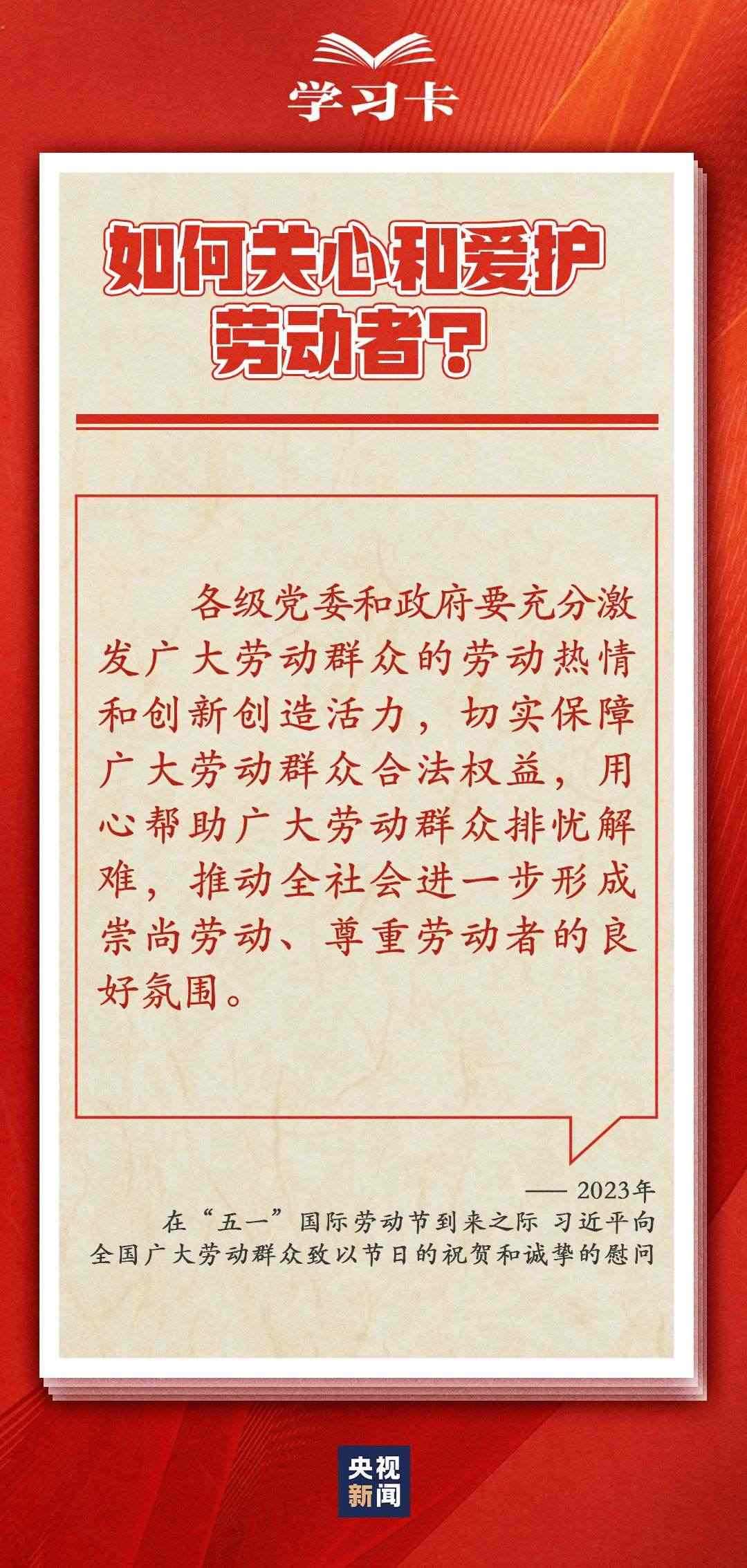 學(xué)習(xí)卡丨如何關(guān)心愛(ài)護(hù)勞動(dòng)者?總書(shū)記這樣說(shuō)
