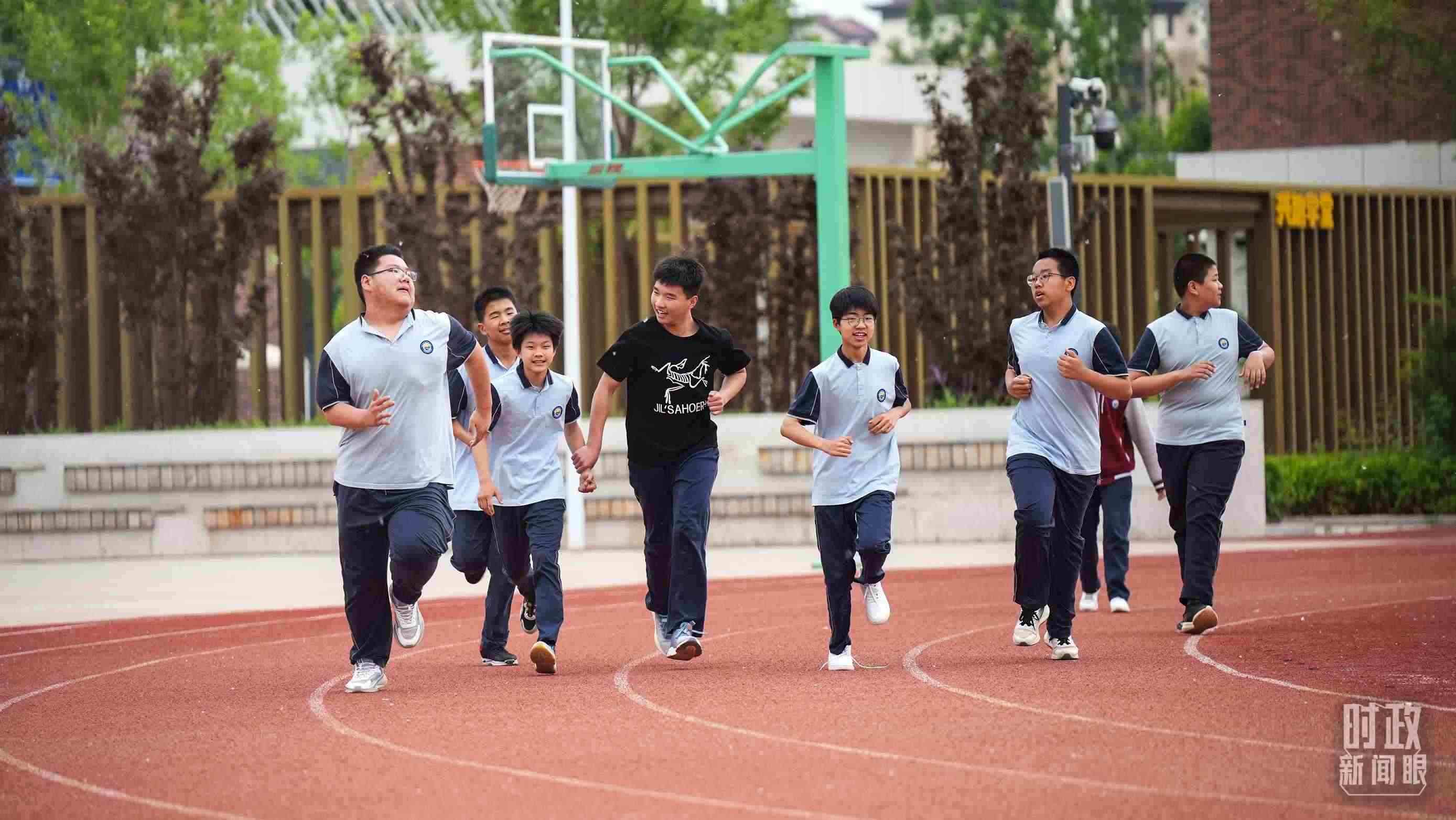 △容東安置區(qū)的雄安容和紅杰初級中學內(nèi),中學生在操場練習長跑。(總臺國廣記者李晉拍攝)