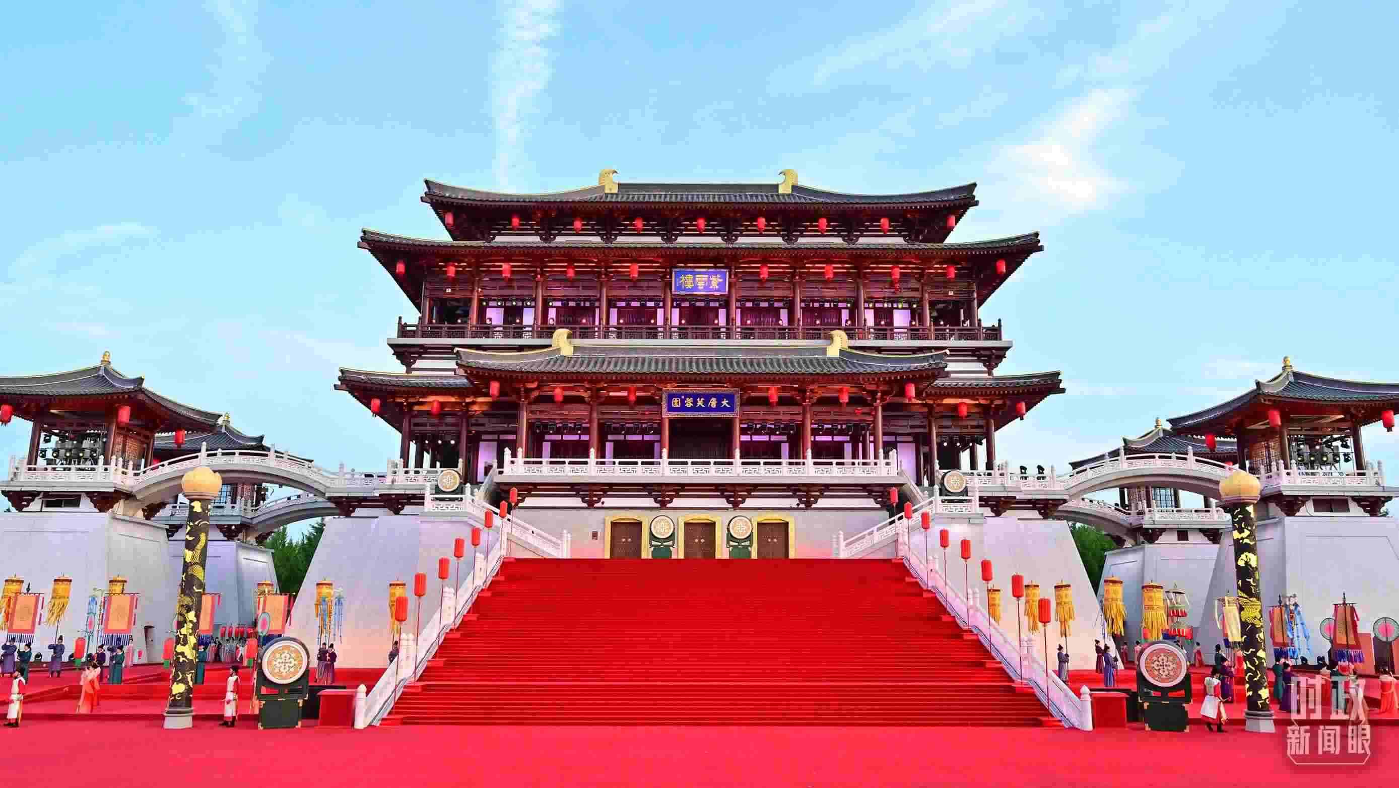當晚的迎賓表演以“大唐盛禮”為主題,復原唐朝時期迎賓禮儀,以傳統(tǒng)文化之“禮”,迎遠道而來之“賓”。