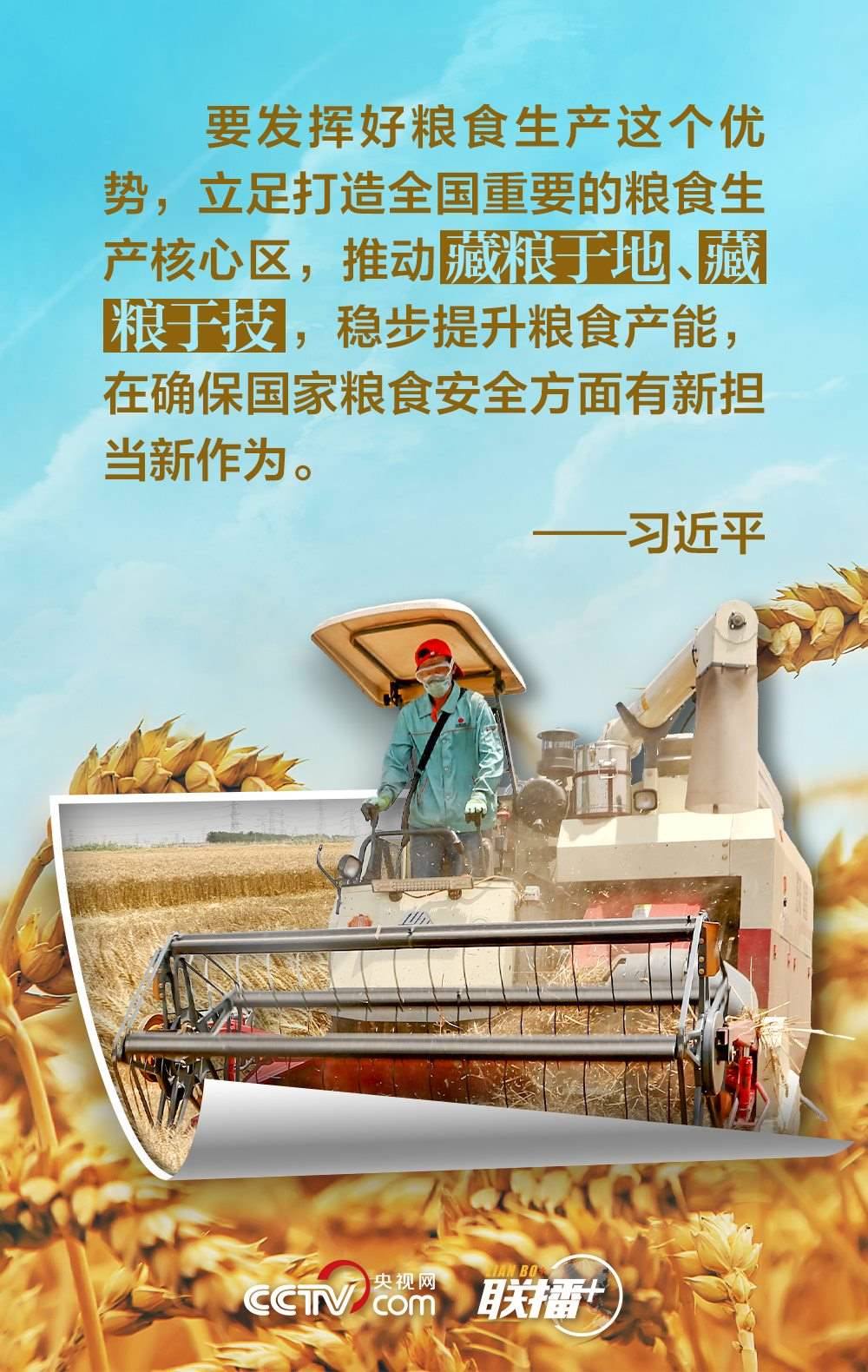 夏糧是全年糧食生產(chǎn)的第一季,約占我國全年糧食產(chǎn)量的五分之一,主要包括夏收的谷物、豆類和薯類等?!笆种杏屑Z,心中不慌?!绷?xí)近平總書記十分重視糧食安全,他強(qiáng)調(diào),中國人的飯碗任何時候都要牢牢端在自己手中,飯碗主要裝中國糧。值此夏收時節(jié),央視網(wǎng)《聯(lián)播+》與您一起學(xué)習(xí)領(lǐng)悟總書記的糧食觀。