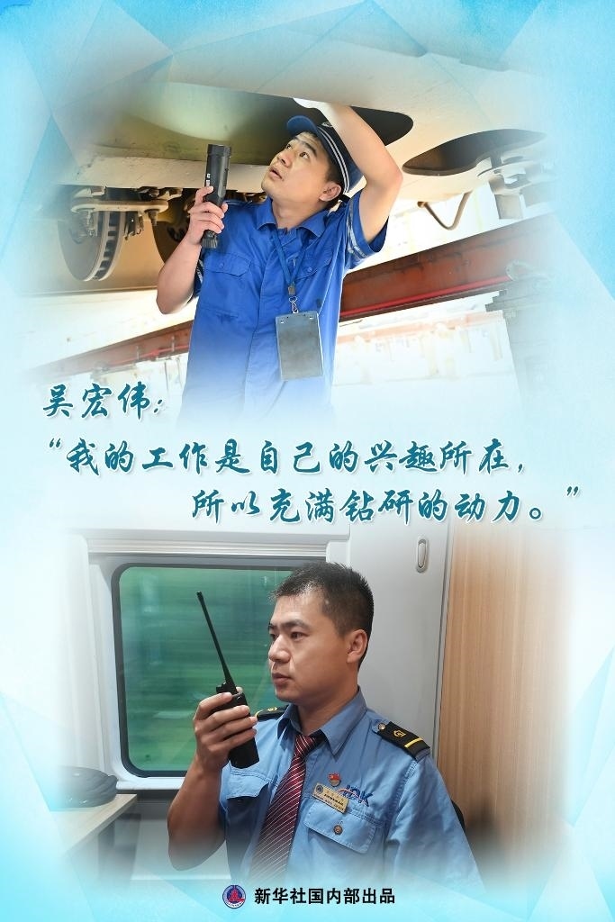 除了苦練,吳宏偉還喜歡鉆研,成天琢磨的就是高鐵的每一個部件如何運行又怎樣維修。一遍遍實踐中,他腦中就有了一張高鐵每個部件的“維護圖”。