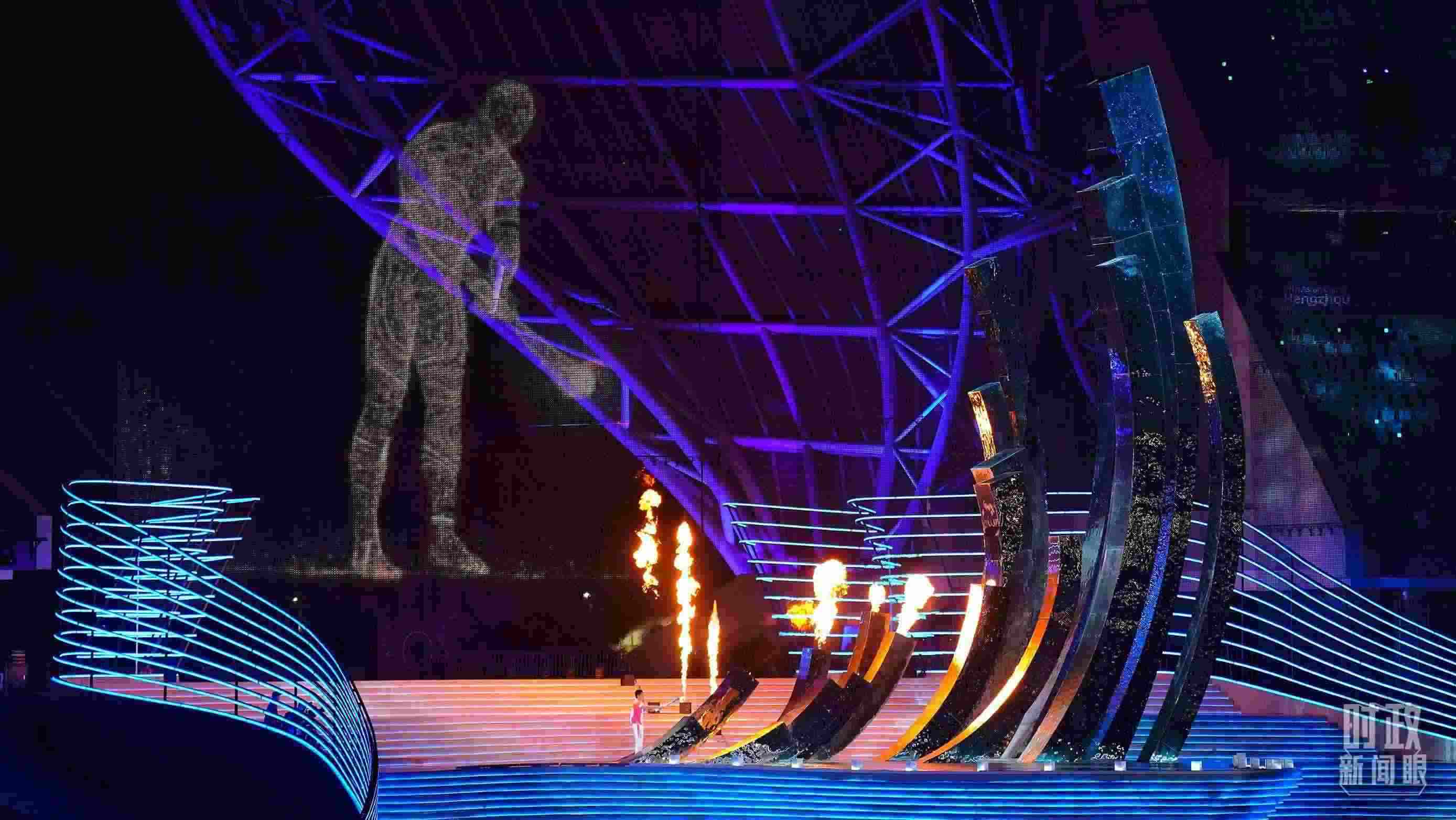 當(dāng)晚的主火炬點(diǎn)燃儀式,由運(yùn)動(dòng)員火炬手與“數(shù)字火炬手”一道點(diǎn)燃主火炬塔,這是亞運(yùn)史上首個(gè)數(shù)字點(diǎn)火儀式。杭州亞運(yùn)會(huì)開幕式還取消燃放實(shí)體煙花,改用“數(shù)字”煙花替代。