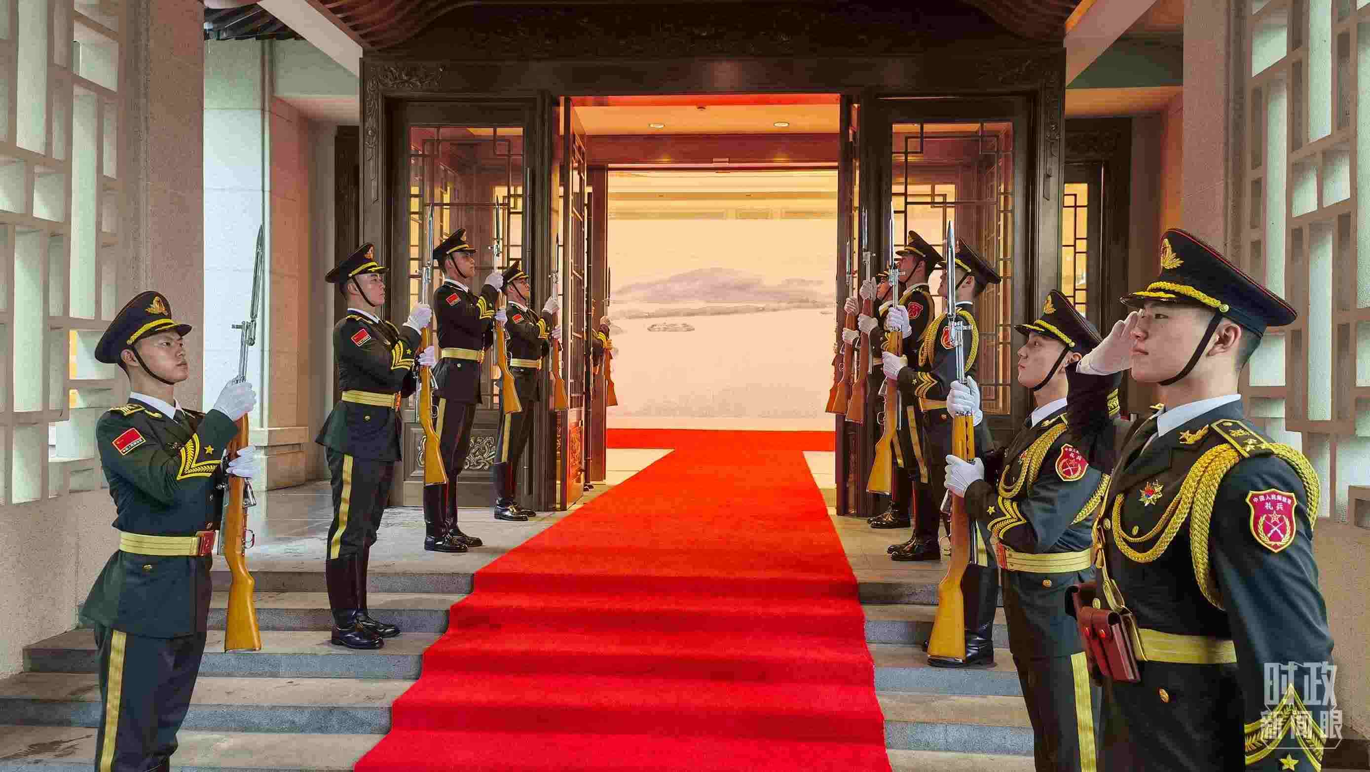 △雙邊會(huì)場(chǎng)外的禮兵。(總臺(tái)央視記者周志國(guó)拍攝)
