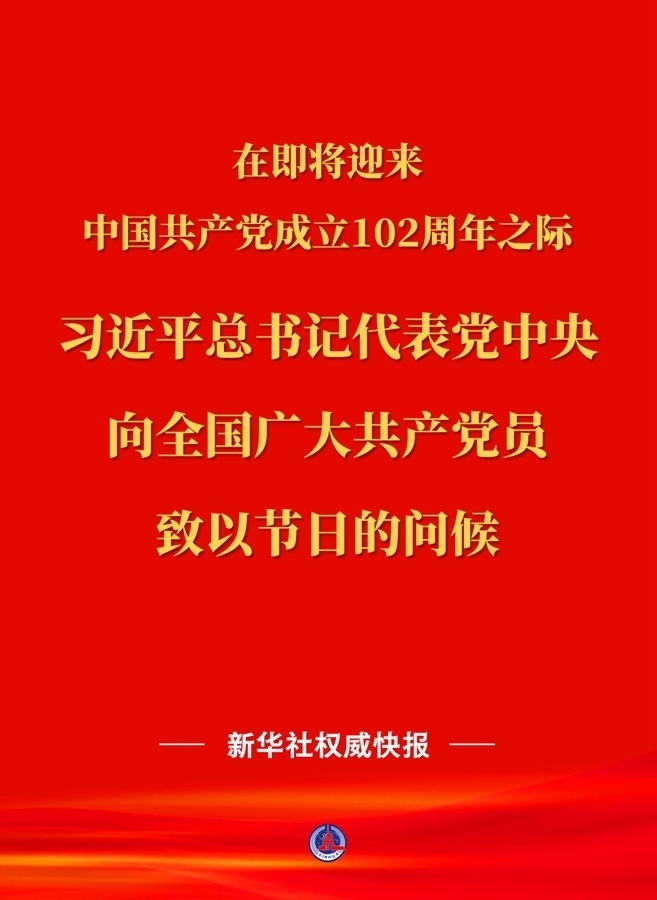 習(xí)近平總書記代表黨中央向全國(guó)廣大共產(chǎn)黨員致以節(jié)日問候 在即將迎來中國(guó)共產(chǎn)黨成立102周年之際,習(xí)近平總書記代......