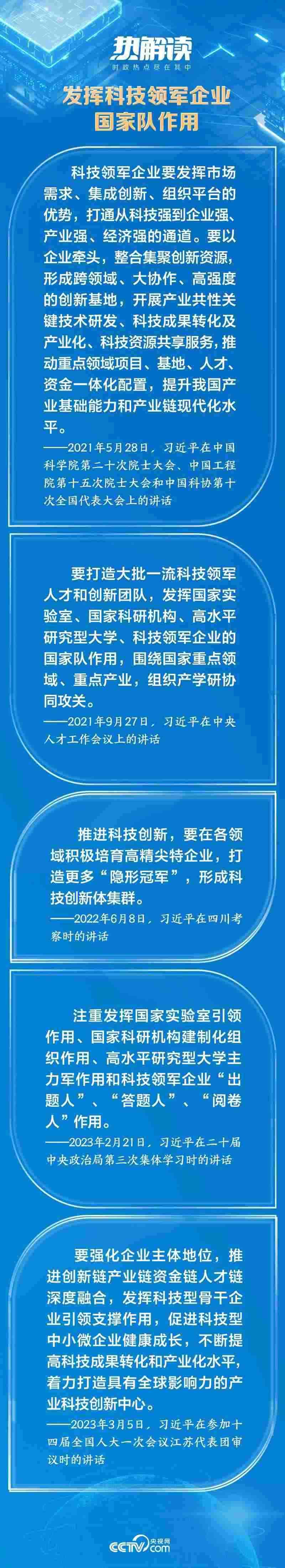 企業(yè)是市場(chǎng)的主體,是推動(dòng)科技創(chuàng)新的生力軍。作為國(guó)家戰(zhàn)略科技力量的重要組成部分,總書記對(duì)科技領(lǐng)軍企業(yè)更是寄予厚望:“要自覺履行高水平科技自立自強(qiáng)的使命擔(dān)當(dāng)”,要注重發(fā)揮“科技領(lǐng)軍企業(yè)‘出題人’、‘答題人’、‘閱卷人’作用”。