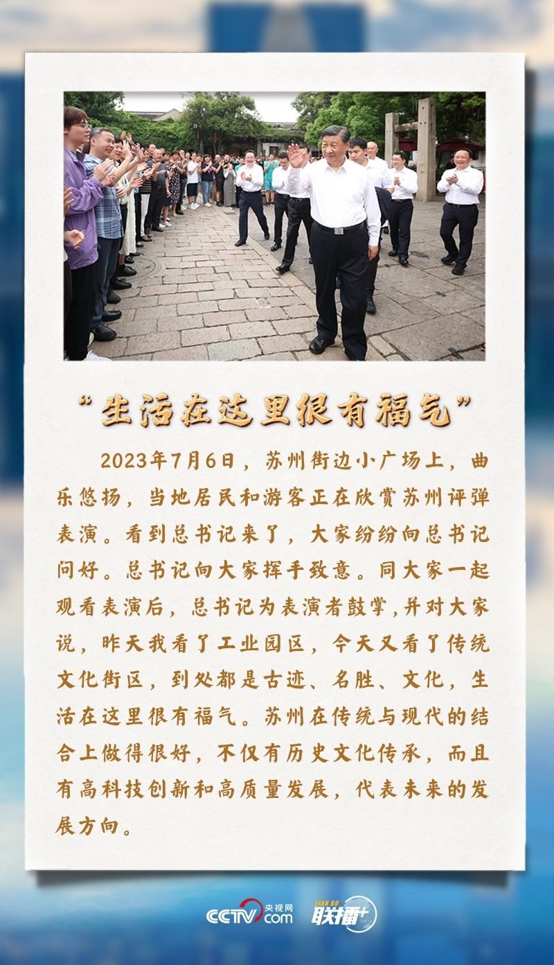“昨天我看了工業(yè)園區(qū),今天又看了傳統(tǒng)文化街區(qū),到處都是古跡、名勝、文化,生活在這里很有福氣?!?月5日至7日,習近平總書記先后來到蘇州、南京等地考察調(diào)研。