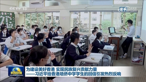 央視網(wǎng)消息(新聞聯(lián)播):習(xí)近平主席24日給香港培僑中學(xué)高一年級全體學(xué)生回信,對他們予以親切勉勵(lì)。香港培僑中學(xué)師生表示,收到習(xí)主席的回信深受鼓舞,他們將不負(fù)習(xí)主席的期望,堅(jiān)持讀萬卷書,行萬里路,融入國家發(fā)展,為建設(shè)美好香港,實(shí)現(xiàn)民族復(fù)興貢獻(xiàn)力量。