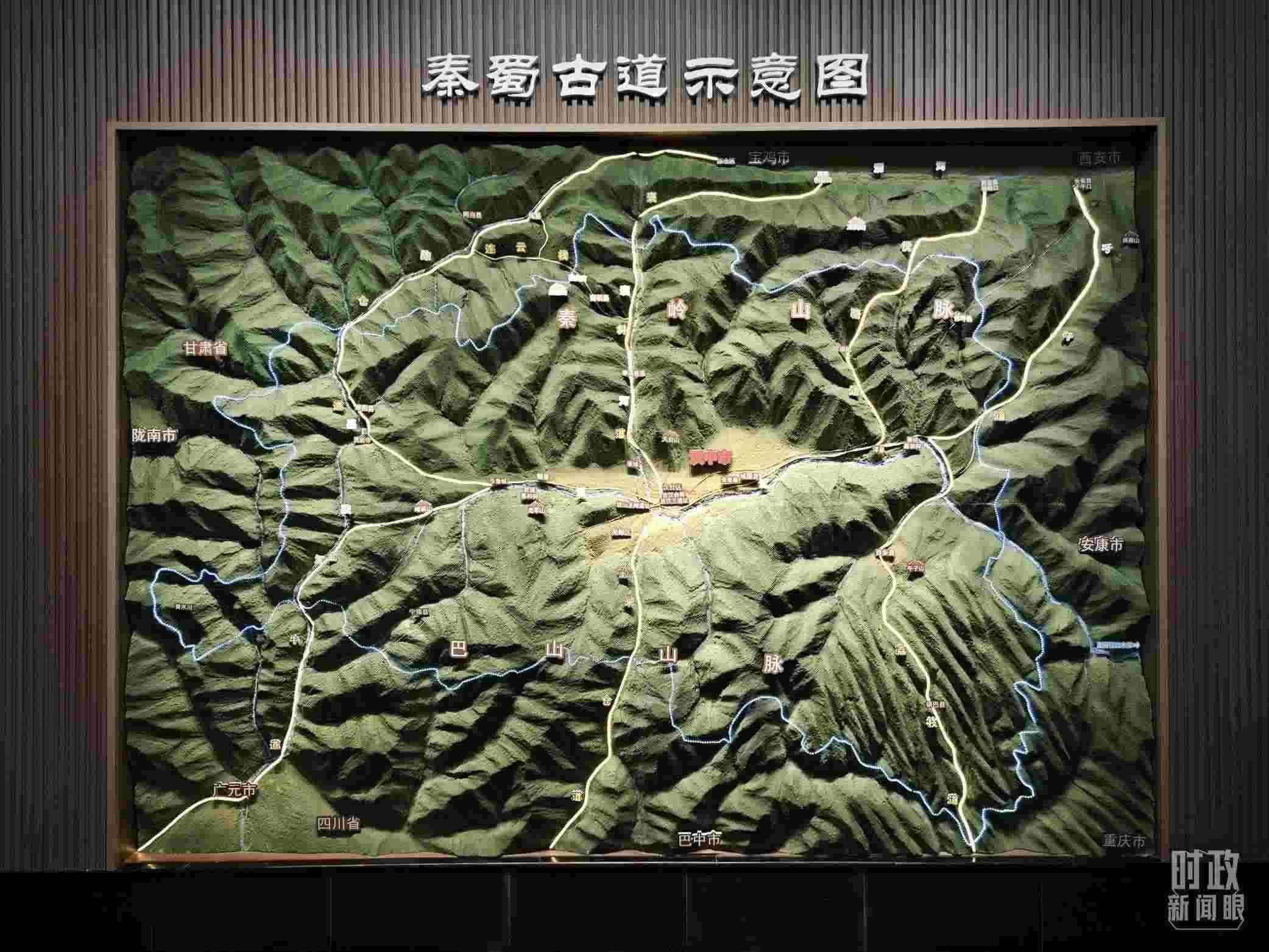 △漢中市博物館內展示的秦蜀古道示意圖。(總臺央視記者黎兵拍攝)