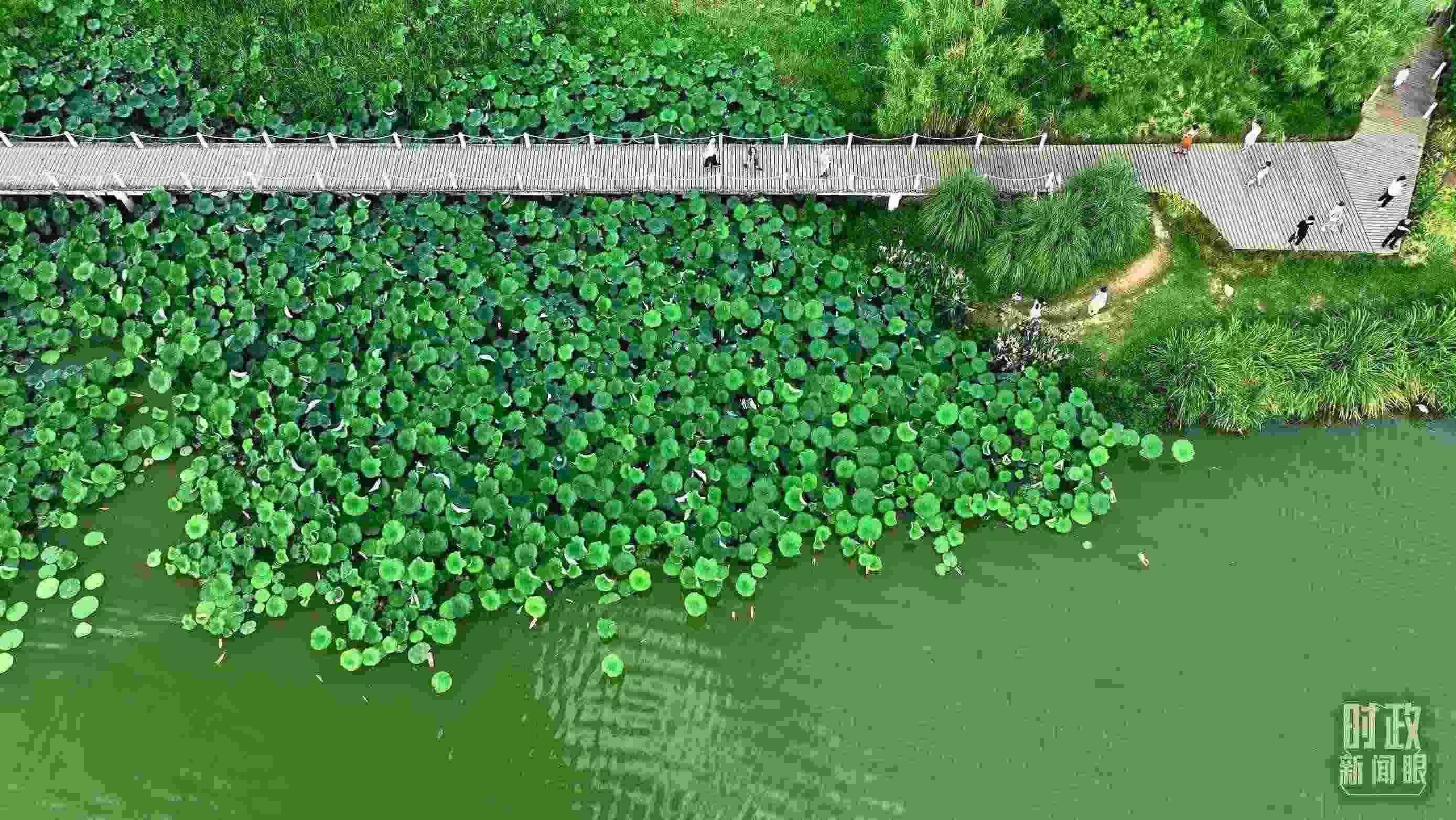 △天漢濕地公園內,游人穿行,荷影婆娑。(總臺記者劉海濤拍攝)