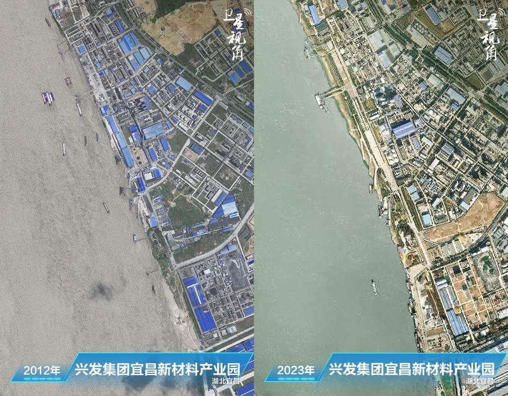 ↑2023年與2012年相比,興發(fā)集團宜昌新材料產(chǎn)業(yè)園內(nèi),原來臨江建設的生產(chǎn)設施已經(jīng)搬遷和拆除。