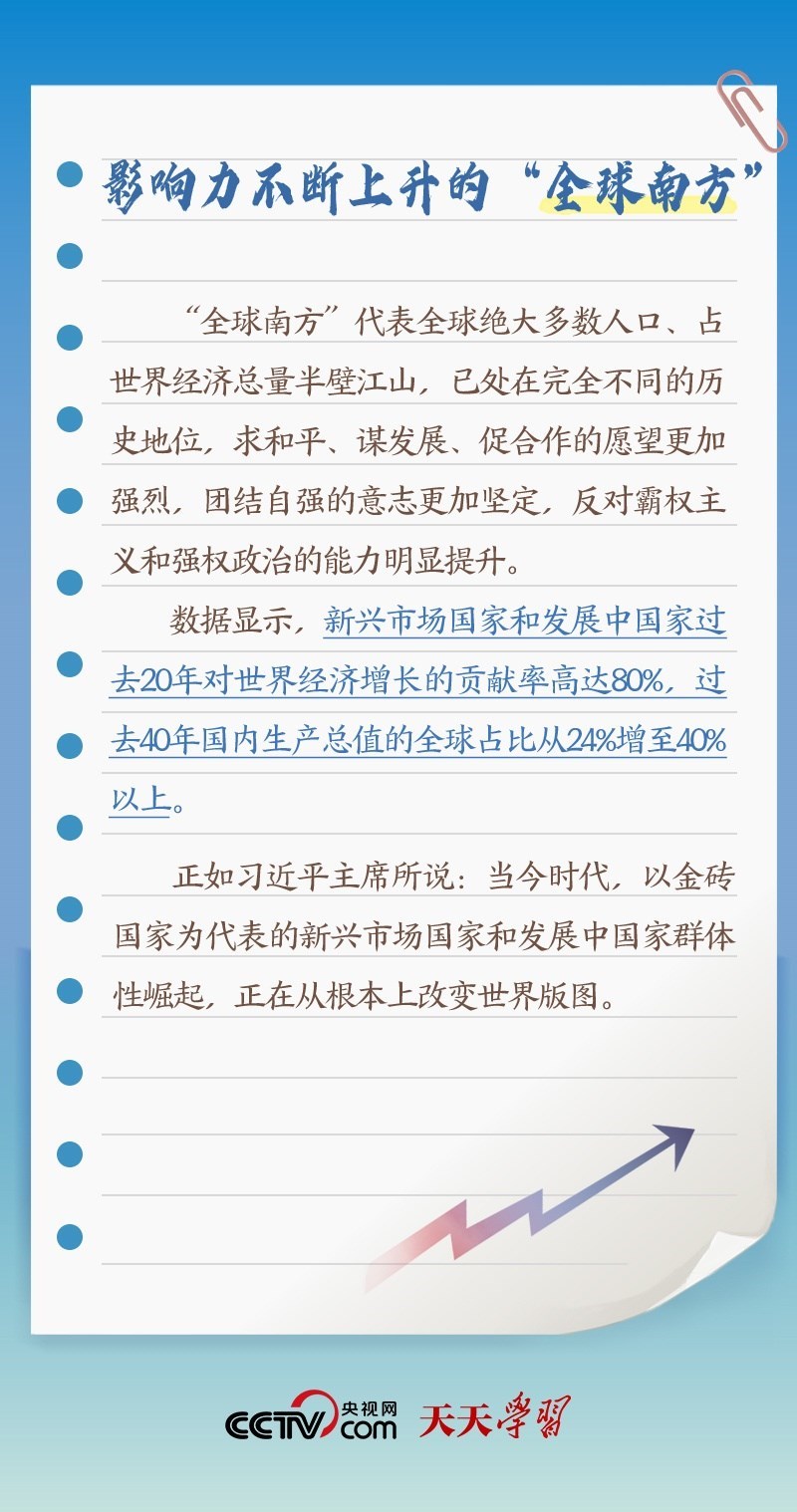 此次出訪,習(xí)近平主席在向約翰內(nèi)斯堡金磚國(guó)家工商論壇閉幕式發(fā)表致辭、同南非總統(tǒng)拉馬福薩共同會(huì)見記者等場(chǎng)合均提及“全球南方”。什么是“全球南方”?“全球南方”國(guó)家有何共性?中國(guó)為何是“全球南方”的天然成員?跟著央視網(wǎng)《天天學(xué)習(xí)》一起了解。