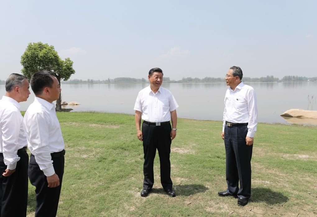 2020年8月,習(xí)近平總書記在安徽馬鞍山市考察期間來到江邊察看長江水勢和岸線生態(tài)環(huán)境。