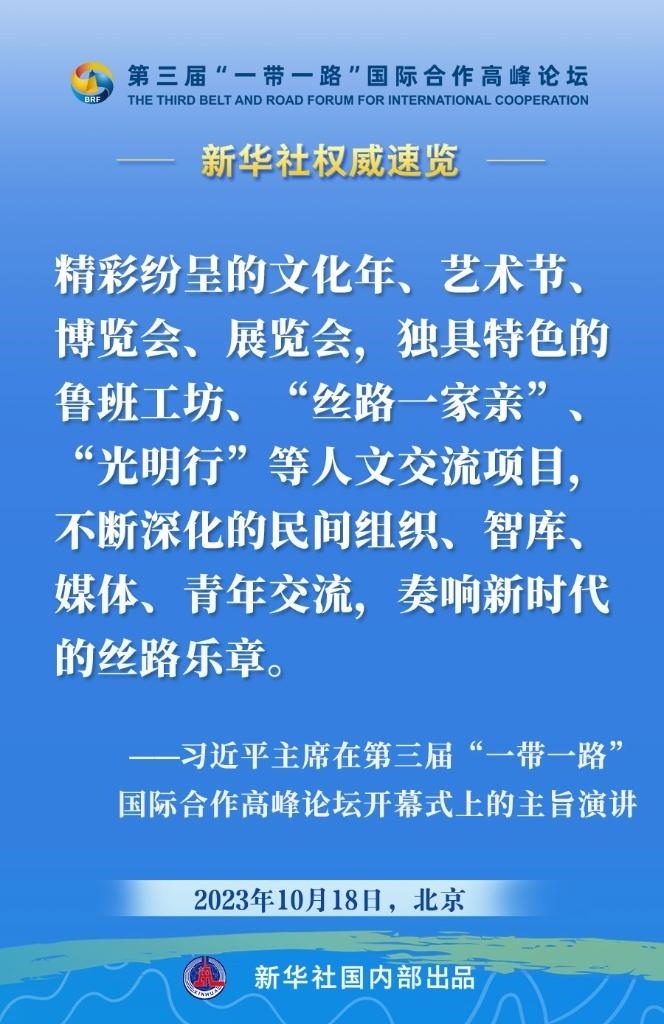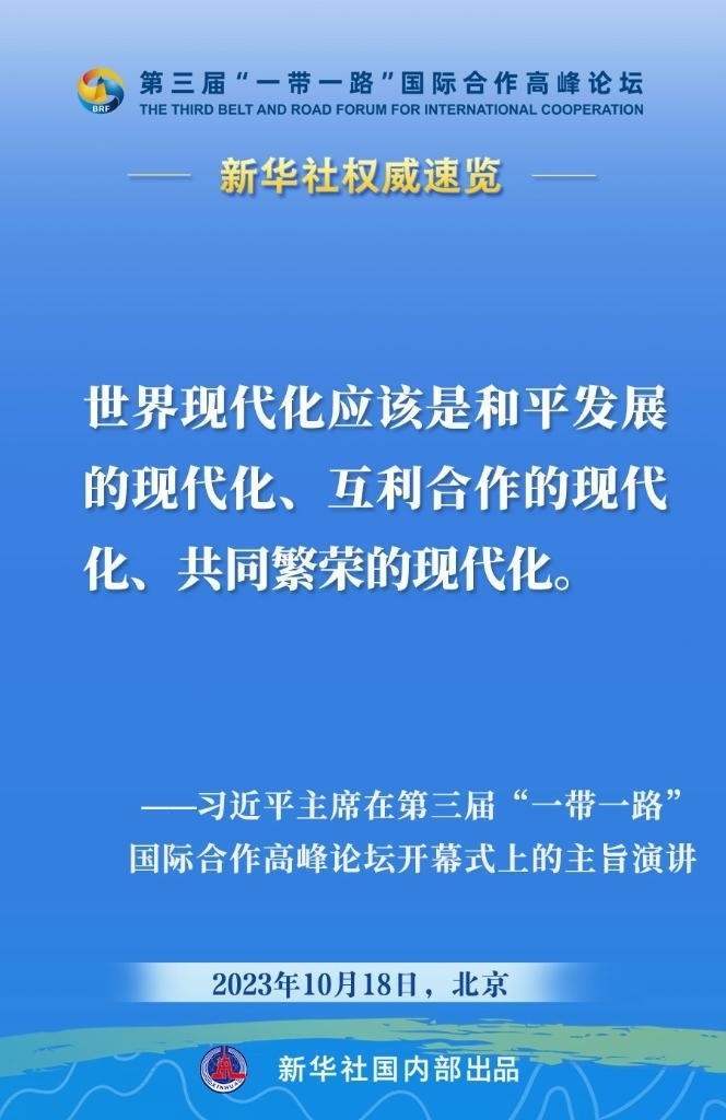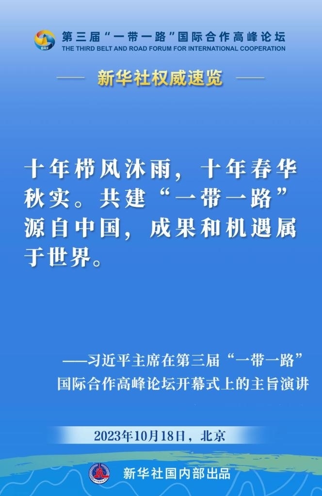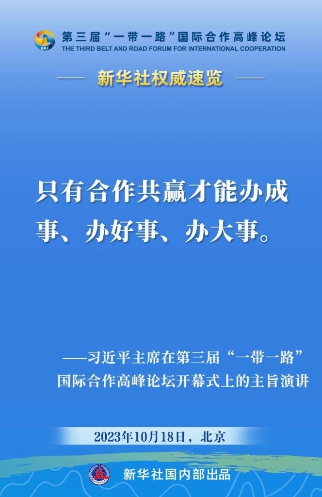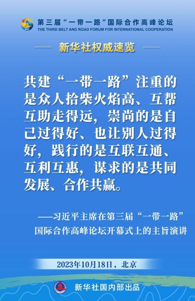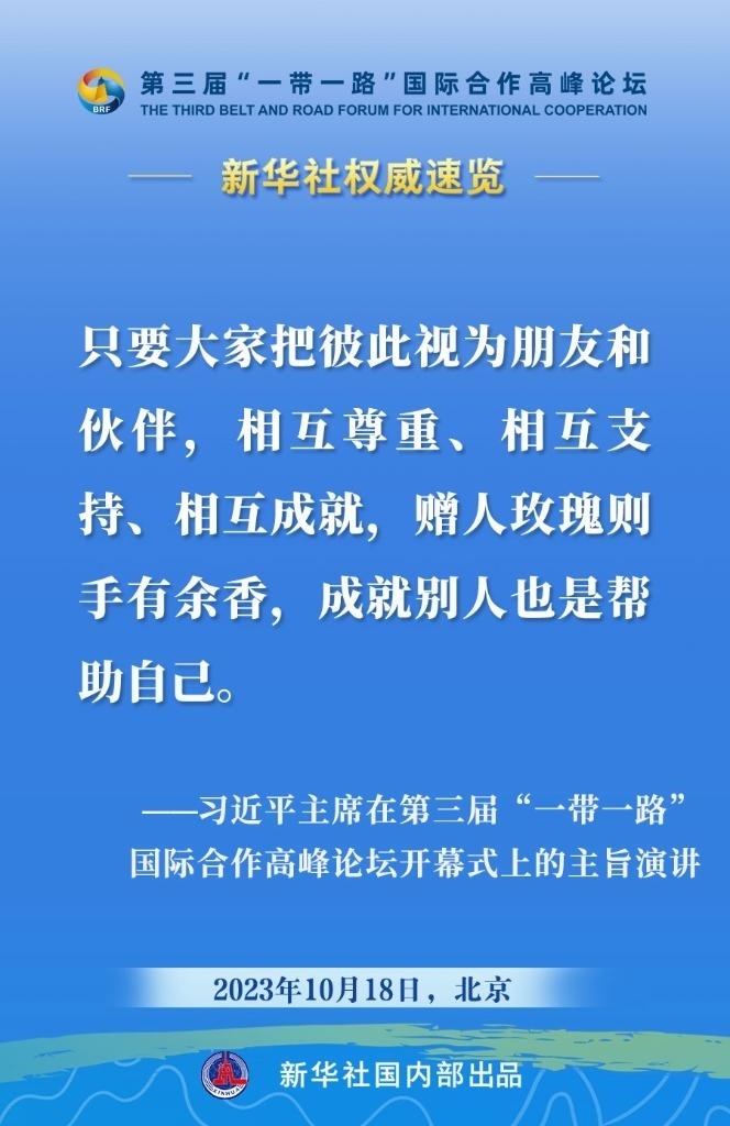 10月18日,國家主席習近平在第三屆“一帶一路”國際合作高峰論壇開幕式上發(fā)表主旨演講。一起來看金句。